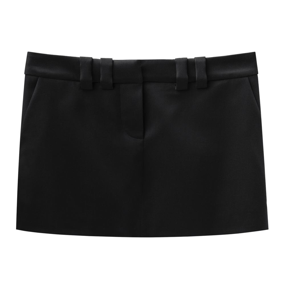 Мини-юбка черного цвета выполнена из натуральной шерсти. По бокам модель дополнили карманами. Подкладка из гладкой вискозы обеспечит комфорт во время носки.